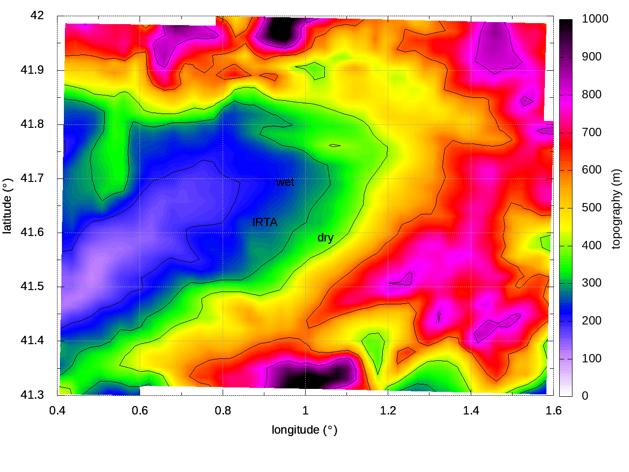 The locations (WET, DRY and IRTA) are indicated in the following map.