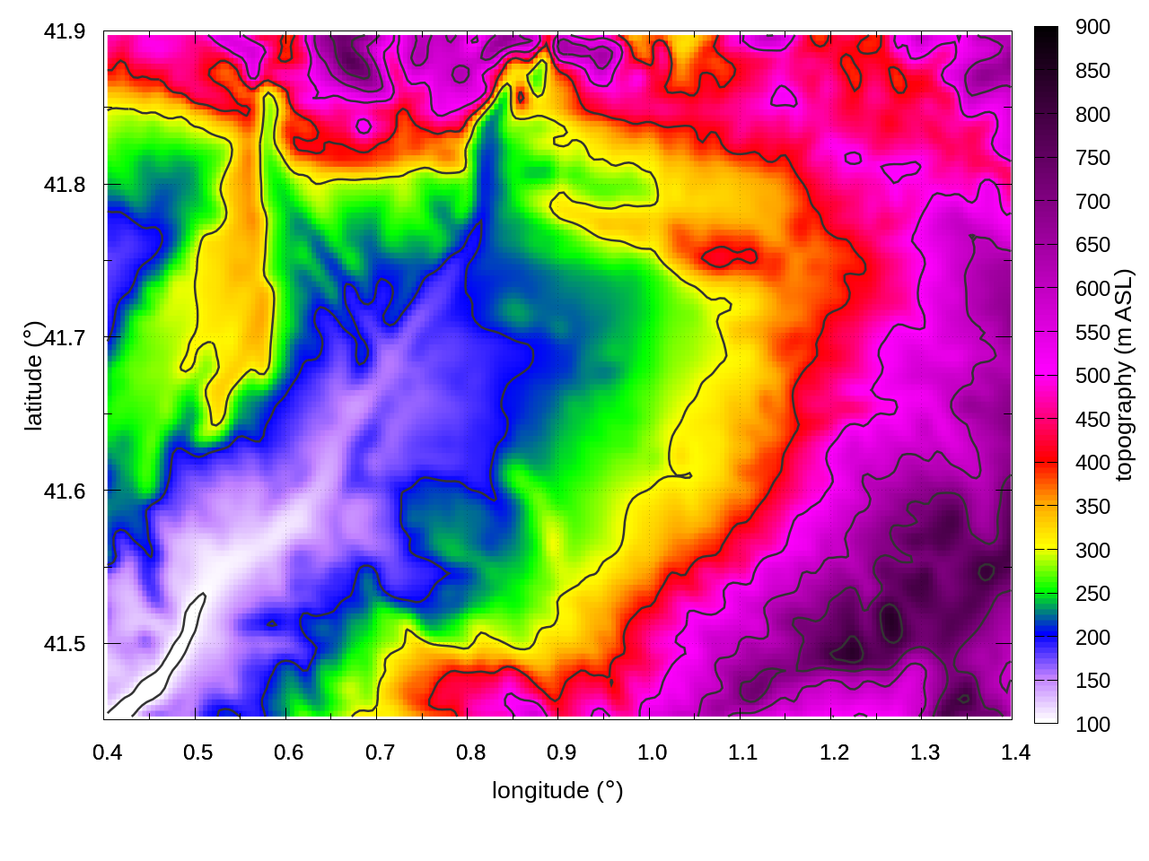 Topography (left: inner domain, right: zoom over the region of interest)