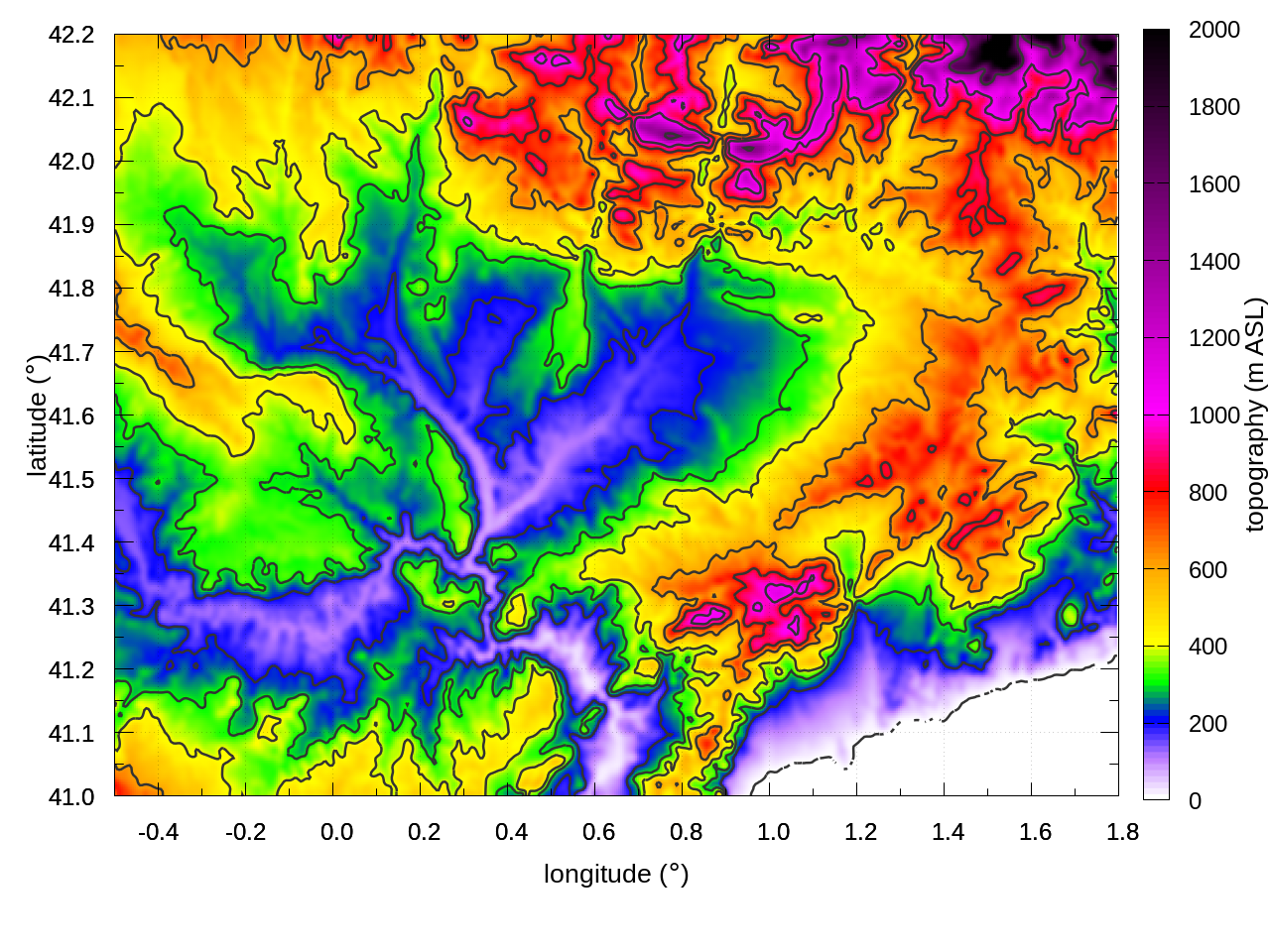 Topography (left: inner domain, right: zoom over the region of interest)