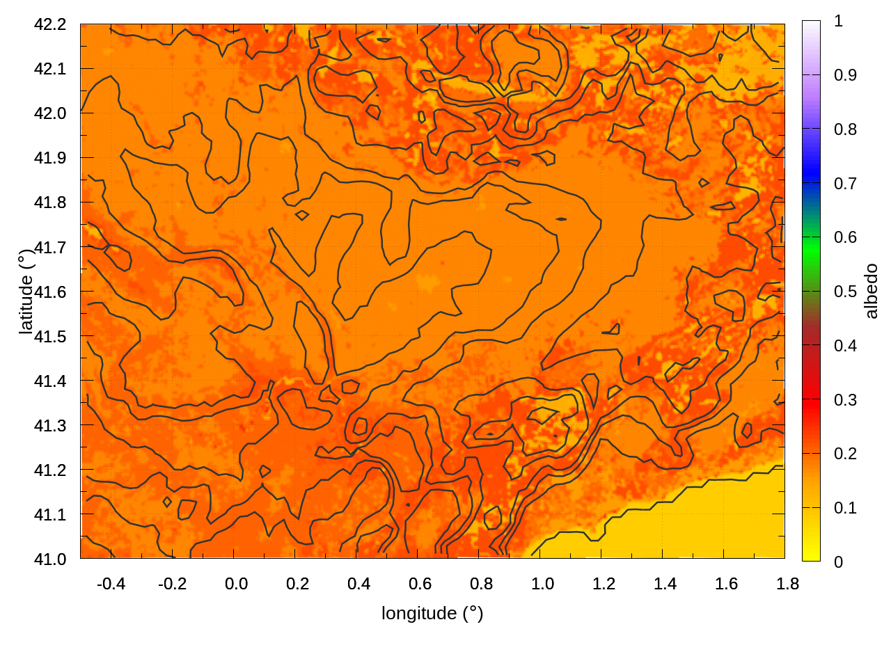 Albedo (left: inner domain, right: zoom over the region of interest)